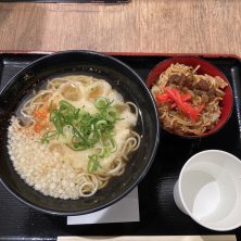 今日のランチは久々大阪梅田で。 食べたのは姫路の名物天ぷらえきそばとミニそばメシセットで。うどん出汁に中華麺の黄ぃそばと兵庫の地元めしのそばメシ。この量ちょうど良い❗️😋