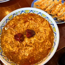 クロワッサン木更津店にバケットを買いに行ったら休み( ;´Д`) 新規の営業許可書の手続きなどで、昼飯すら食えてなかったので、手頃な隣のお店に 麻婆茄子ラーメンチャーシュートッピング これだよこれ!麻婆はこうでなきゃ! 中国山椒が効いてる! 豆板醤の辛さだけだと、辛いんだけど香りが出ない 極太麺ってのもあったので気になる 他のメニューも試したい。 またこよ( ´ ▽ ` )ノ