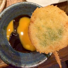 車海老から始まる串揚げは初めて。 センスが光ります。