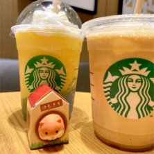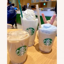 オムライスを食べたあと 『アイスクリームが食べたいね』 と、私がそんな気分になったので チビ達を連れて近くのイオンへ。 でも、入り口の真正面にスタバがあり 『こっちがいい!』 という2人の気分を尊重して、アイスを諦めました。笑 1号はバニラフラペチーノ・ベンティ (↑1番大きいサイズ) 本当はグランデで良かったそうなんだけど 私が注文して間違いしてしまったのでした😅 まぁそれでも1号は完食したけど! 2号は春色ミルクコーヒーフラペチーノ 私はアイスラテ。