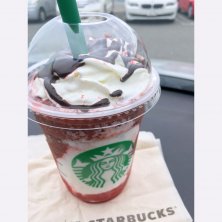 今季2度目のストロベリーフラペチーノは チョコチップとチョコソースをカスタマイズ! アポロチョコみたいになるんだけどね… チョコが勝っちゃってイチゴ感が減る💦 次は、またカスタマイズ無しに決めた🍓