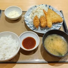 牡蛎フライミックス定食 ほかほかで美味しかったです。 大阪旅行に来て、晩御飯がチェーン店という、ていたらくぶりが悲しい…