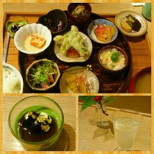 小鉢膳ランチ♪ とうもろこししんじょう、 鯵のたたきと日向夏のサラダ仕立て、 豚肉と甘長唐辛子の時雨煮、 たまご豆腐、 蒸し鶏と蓮いもの豆乳ごまらー油たれ、 トマトジュレとくらげのゆず風味、 もずきとろろ針生姜添え、 鱧とアボカドのフリットカレー塩、 東京に来ると食べたくなる「AKOMEYA」さん♪ お米がたまらなく美味しいです! 今日は長野の「風さやか」でした。
