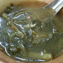 ミャンマー家庭料理の定番。酸っぱくて辛い、お茶の葉スープ。辛さギリギリOKでした。