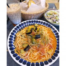 ♡アンフォーラ♡ #ピリ辛トマトソースの🍆パスタ いつ行っても沢山のお客さんですが 回転早くて並ばず入れます❣️ おひとり様もかなり多くて~ リピーターだらけな感じ︎︎👍🏻✨️ 何食べても美味しいお店😋🍝