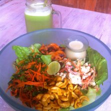 バリ旅行4日目のランチ♪ ✳︎サラダバー ✳︎フレッシュジュース ローフード、オーガニック、ベジタリアンのお店。 店内は、いかにも ”ワタクシ、ライフスタイルにこだわりがありますの!”って雰囲気の欧米人で溢れてます。(^^;; とても美味しかったけど、正直、私には足らなかった。(笑)