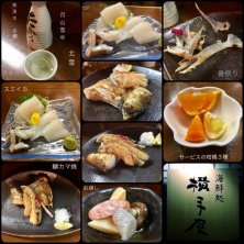 男4人呑み(╹◡╹) グラス生ビールで乾杯して…日本酒を一合「亀の尾」…後はレモンハイ(╹◡╹) お通しの菊の酢の物…ホヤの塩辛…ししゃもオス…玉子焼き……お酒が止まりません(^。^)