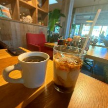 朝ご飯)^o^( 本日のコーヒー ハウスブレンド コナズラテ アイス 例年なら今頃ホノルルマラソン参戦の為に現地に行っているところだけど…☀️ 色々あって今年は見送り… なので今日はハワイ気分でコナズコーヒーへ モーニングは平日だけだから、通常メニューで。 一番乗りしたのに… 2人席に案内されてガッカリ😭 後から来た2人組たちも2人席に案内されてたけど、席変えて広い席へ… わがまま言えず私たちはこのままで🥹