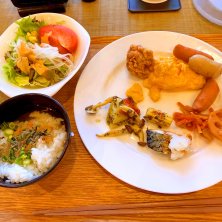 ホテルの朝ごはんは、居酒屋で。 中途半端な時間に来ちゃったのか、料理の量と温度とスタッフの動き、接客に不満(* ̄m ̄)。