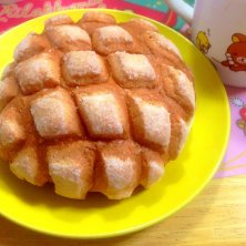 近所にできたアルテリアベーカリーのメロンパンです…♪ 運のいいことに焼きたてゲットしました ( *• ̀ω•́ )b クッキー生地の部分がザックリしていて中はふんわりで美味(๑´ㅂ`๑) 夕飯も近い?ので家族でシェアです^_^