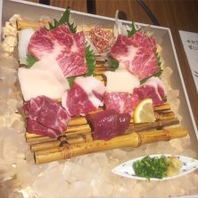 熊本名物・馬刺し。 鮮度抜群の馬肉はとろけるような食感! 実は醤油だけで頂くのが、一番美味しいのです。 県外から来た友人は「馬」ずくしに感激してました。お店セレクト、大成功!!