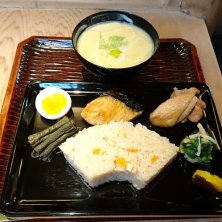 京都市内、人人人人〜! 四条に出てきました! (理由はのちほど) 大好きな「志る幸」 メインが有名なお店は たくさんあるけれど ここは“おつゆ”がウリ♡ 白味噌、赤味噌、お澄ましと 好きな具材を選べます。 私は白味噌でおとしいも。 金ゴマの香りとお味噌の甘みがたまらない♡ 夫はたけのこのおすまし(木の芽の風味!) 友人は湯葉の白味噌(山椒効いてる!) 利久弁当は選ばず 出し巻き卵と鶏の炭火焼きを サイドに選んで 夫と友人とわけわけよ〜! おつゆおいしかった♡♡