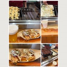 息子と箕面墓地公園に お墓まいりへ。 西宮北口で、用事を済ませ 西宮ガーデンズでランチと思ったら、すご〜〜い 人人人… 仕方なく、揚げたてコロッケと野菜ジュース。 駅では、蓬莱のフルーツアイスキャンディー。 梅田に戻り、OLの時は考えられないお店へ。 たこ焼き•醤油味 (◔⸑◔;) 旨いな〜大阪グルメ〜(*´◒`*)