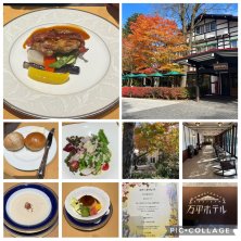 本日は軽井沢に来ております。 旧三笠ホテルから万平ホテルでフレンチのフルコース🍽️ 軽井沢プリンスショッピングプラザでお買い物⤴️ その後娘は新幹線🚄で東京に帰ります😊❣️