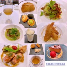 電車、京橋の家で旦那さまと合流。 今月末に一緒に旅行する方々とディナー(^^) 葡萄ジュース、パン、バター、カナッペなど。 天草産小肌のマリネ ニース風サラダ仕立て、天使の海老カダイフ包み揚げポロ葱サラダとタルタルソース、お魚料理、グラニテ、林SPF豚のローストポーク茎山葵添え、バスクチーズケーキ フランボワーズのソルベ添え、ハーブティー。ミニデザート、炭酸水。 量が多くてお腹いっぱい。おいしかった。楽しいおしゃべり。途中大雨。奥様からお菓子をいただく。解散して、京橋で線香あげて帰宅。