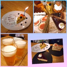 鎌倉からの帰り道 のどが乾いていて 皆で生ビールで乾杯🍻 真実ちゃんのお誕生日会🎂 手作りケーキの美味しいお店。 ラーメン屋さんでも 伯母さんのお店でも 3人でのお喋りできなかったので ケーキ🍰