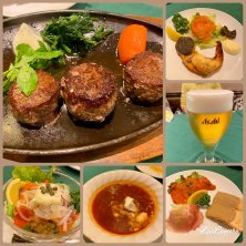 母の誕生日で こちらでお祝い 私が幼稚園の頃から通う スペシャルなお店 ロシア料理は ここが一番好き♡ 上から ピロシキ 生ハムメロン レバーペースト ロシア風サラダ ボルシチスープ ロールビーフステーキ