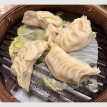 昭和35年創業の北京料理、【蓬莱閣】に訪問しました。作家、池波正太郎が足繁く訪れたお店です。 名物は餃子。焼き,水,蒸しの3種類あり、本日は《焼き餃子》と《蒸し餃子》を注文しました。 《焼き餃子》 世間の倍以上はある超特大サイズ。バナナくらいの大きさはあります。タレを付けずにそのまま、又は酢とラー油で食べるのがお店の推奨。かぶりつくと中から小籠包ばりに肉汁が溢れ出します。餡はお肉主体でガッツリテイスト。これは今まで味わったことない未知なる味わい。下味が付いてるので、そのままでも十分美味い。