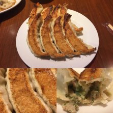 餃子ライス1450円、だったかな? 餃子だけだと1330円 カリっとした焼き目ともっちりした皮に白菜長ネギ豚肉の餡がたっぷり 醤油お酢辣油カラシを混ぜたタレでいただく やっぱりこれだな、という味