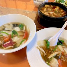 晩ごはん 昨夜 義両親を連れ 一緒に夕飯〜 日頃の感謝に😋 麻婆豆腐は ちょっと 無理なくらい 山椒?が効いてました😅 担担麺 黒酢酢豚美味しかったです!