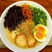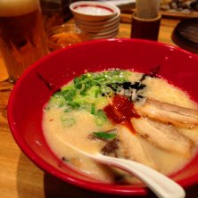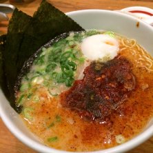 一風堂からか麺‼︎のりと温泉玉子トッピング‼︎辛さは極特辛‼︎*\(^o^)/* 初めて食べましたが調子に乗って一番辛いのにしたら超辛かった…(>人<;) ハバネロが大量に入ってました‼︎Σ(゚д゚lll)