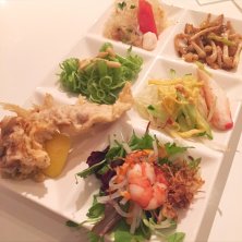 初めてベトナム料理を頂きましたが、めっっちゃ美味しい❗️大満足❗️ ベトナム風前菜盛り合わせ 緑色のクルクルは、生の空芯菜。うまっ! 手前左側はカニを揚げたもの。殻まで柔らかく食べられます。