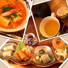 千葉へ釣り&自然食ランチに行く途中、車のトラブルで高速を降りてディーラーへ。 車を預け、銀座に移動。ランチタイムギリギリになり、入店。 いろいろなバリエーションの春巻きとフォー、蓮茶をいただきました。