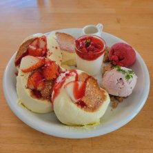 11月27 日のルタオのパンケーキ🥞 お兄ちゃんの千歳市民の商品券使ってルタオにパンケーキ食べにいってきました🥰 🍓苺みるく とってもフワフワで口の中ですぐ溶けてしまいました😊見た目にも可愛くて、美味しいパンケーキ食べて幸せな気分になりました🤗 旦那さんと娘にはナイショです🙊