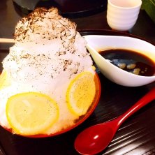 番茶かき氷/ぎおん徳屋 たっぷり過ぎる?番茶蜜蜜に自家製練乳、レモンのシロップ漬がトッピングされたふわ系かき氷(๑• •๑)♡ ほろ苦甘いシロップがキク〜〜・笑 練乳をかけるとミルクティー風。 レモンの香りも移って飽きずに完食出来ました☆ せっかくクールダウンしても外に出ると…暑いなぁ。