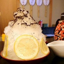 かき氷のハシゴってどんだけ~(笑) 歩き廻って疲れて2杯目‼ 体が欲してたのですよ… 京番茶のかき氷🍧 こちらは、黒みつと自家製練乳付き✨ レモンははちみつ漬けでこれが氷と一緒に食べたら美味い!