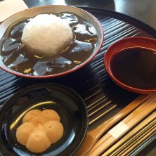 名物わらび餅♡ 真ん中の白いのは味の着いてない氷!だから、わらび餅を冷たいまんま食べることができました!いつも並んでるのに、開店してすぐ行ったから20分くらいで入れた♡ラッキー♪ ねっちょりわらび餅は甘すぎず、粘り気がすごい!