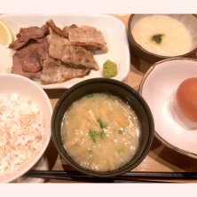 昨日の夕飯 牛タンともち豚の定食♪ イベントでとろろが売り切れで食べれなかったから、とろろに惹かれちゃったのかな(*^^*) 高菜炒めも食べ放題で嬉しいお店(o^^o) 牛タンに柚子胡椒が美味しい♡