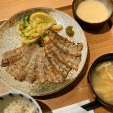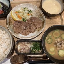 合わせ炙り焼きとろろ定食。牛タンともち豚の炙り焼き。夜でも定食が食べられるのは、ポイントが高いね。