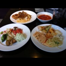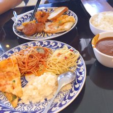 昨日のお昼ご飯(୨୧ ❛ᴗ❛)✧ 久しぶりにビュッフェ〜♪ 安い安いー!と彼氏さんと2人で行ったのですが… まぁ、それなりです。 私達、量もそんなに食べないし (このお皿に乗っているものだけで二人分お腹いっぱい!) 高くても美味しいものの方が いいのでしょうね…(´・×・`) あ!普通に美味しかったですよ! 特にカレーが!あとイカリング!笑