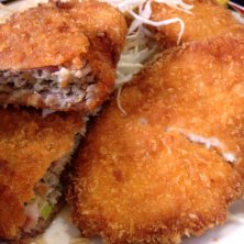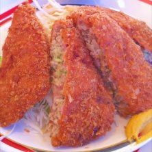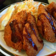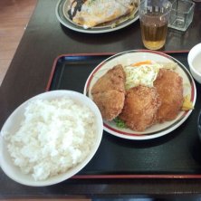 結構大きな餃子カツとチキンカツ2枚。ご飯も最初から大盛り。