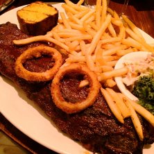 ボストン最後の夜はステーキハウスで♪ 胃もたれ気味なので少なそうなものを頼んだつもりが、出て来たのはこのボリューム!見てくれだけで一発KOですがな、旦那〜(´Д` )