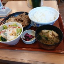 かるび定食ご飯🍚大盛り、到着しました(笑)☀️😵💦(`Д´≡`Д´)??前から気になっていたんですが(爆)(@^^)/~~~😋🍴💕 追浜店がつぶれてこれませんでした。やはり日産自動車の影響ですかね?😭国産米、1日の1/2の野菜がとれるサラダ、しば漬け、味噌汁、かるび、揃っております。朝🌄から、パワー!チャージですね😆
