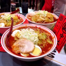 @Dugatさん @katun2525sanさんと本店周年祭参加((∩^Д^∩)) 中本オフ会~♪ 3人ともハズレでステッカー(;´Д`A 次回周年祭は当てたいな~♪ 北極やさい2倍+チャーシュー+たまご 本店はあまり辛くないってDugatさん言ってたのに2倍メチャ辛なんだけど~(*◯︎*)~♯︎