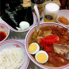 北極ラーメン 野菜、味玉トッピング 野菜とか足しちゃうと辛さが落ちるから邪道、って言われても好きだから足しちゃいます💕 寒くなってきたから、そろそろ食べたいな、と思ってた季節の?一杯。 美味しく汗だくでいただきました〜( *´艸`) すするとむせるので、一口分ずつ食べるのが完食のコツです😎