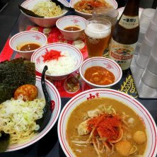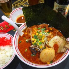 北極野菜+チャーシュー1枚。 幡ヶ谷で狙っていたラーメンが食べられなかったので、上板橋に寄り道。 こんな時間(23:30)なのに満席でこんなもの食って、みんなおかしいでしょ。 大宮で食べたチャーシューが素晴らしかったので超期待して最後までとっておいたのだけど、激しく期待外れでちょっと辛かった。おそらく調理じゃなくて肉の質の問題だな。 スープまで完食。