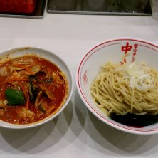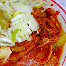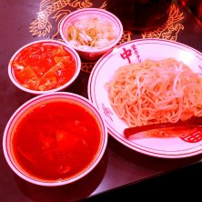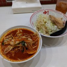 夜ごはーん(*´∇`*) 冷やし味噌やさい ねぎチャーシュートッピング、サービスウーロン茶 いただく(๑˃̵ᴗ˂̵)