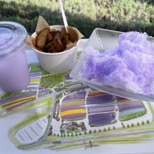 少し暑くなってきたのでファーム富田でひと休み。 ラベンダーカルピスとラベンダーかき氷🪻 のつもりだったけど、オマケのポテトフライ🍟もゲットォ〜❗️ あ、そーいえばダイエット中だったような…🤔 まいっか、今日はチートデー🎌ってことで…笑