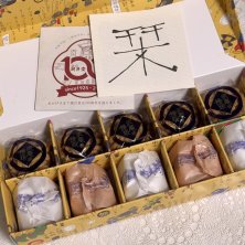 湖月堂のお饅頭! 先日、オット〜の恩師が送って下さった亡き義父へのお供え *権兵衛餅&沢庵饅頭 沢庵饅頭⁈って沢庵で出来てるの?と思ったが 沢庵漬けの原料の大根から出来た砂糖で作ってあるかららしい 甜菜糖とは違うの? よくわからないけど食感が楽しくて美味しかった
