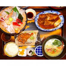 あらかぶ御膳 刺身、煮付け、唐揚げ、あらかぶ味噌汁、ライス