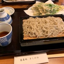蕎麦打ちの師匠のお店。天せいろを食べた。天ぷらは行者にんにく、ふきのとう、えび。とっても美味しかった!