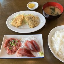 三崎 城ヶ島でダイビングしてきました。 お昼はまぐろづくし定食!(๑><๑) まぐろとイカのミックス丼、味噌汁 まぐろ角煮、まぐろ塩辛、きゅうり まぐろ串揚げ、イカフライ、アイス おみやげにおツナ味噌。