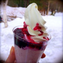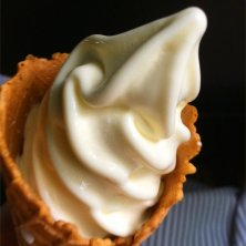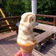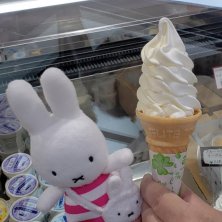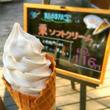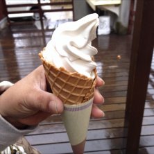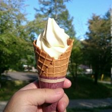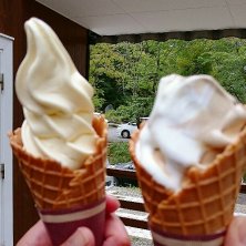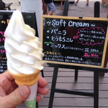 「とうもろこしソフト」 今日はオープンカーのツーリングで御岳まできました。 帰りに有名なソフト屋さんで休憩中。