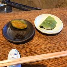 松茸と菊菜あえ、しょつげんじの煮物、孫芋。