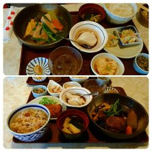 今夜から民泊させて貰うガイドさんおすすめのお店。 塩豚煮物定食と、角煮定食。湯豆腐、豆乳、山芋豆腐、奄美名物の乳酸菌飲料「みき」のセルフサービスつき。 超美味しい❤❤