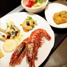 晩御飯 またまた海老を食べました〜〜ヽ(*^∇^*)ノ 毎日海老を食べれて幸せな3日間でした… 大好きなチーズも頂きましたヽ(*^∇^*)ノ 鶴雅さんのレストラン「HAPO」(ハポ)とはアイヌ語で「お母さん」と言う意味です。 鶴雅さんのバイキングも種類がありすぎて、全部は食べれません…σ^_^;